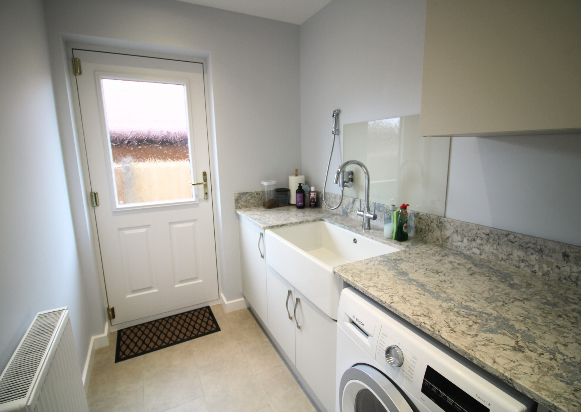 Alongside the kitchen, a new utility room was created to handle laundry, storage and the practical tasks that don’t always belong in the main kitchen. For Mr & Mrs Lloyd, the space had a very specific purpose. With an active dog who enjoys muddy countryside walks, they wanted somewhere to clean up easily before coming back into the house.